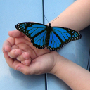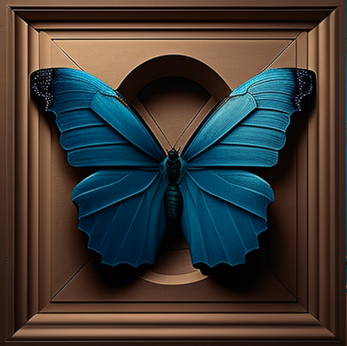 EXCEPT BLUE MORPHO LABEL ARTWORK DESIGNED BY MIDJOURNEY AI 2023.
